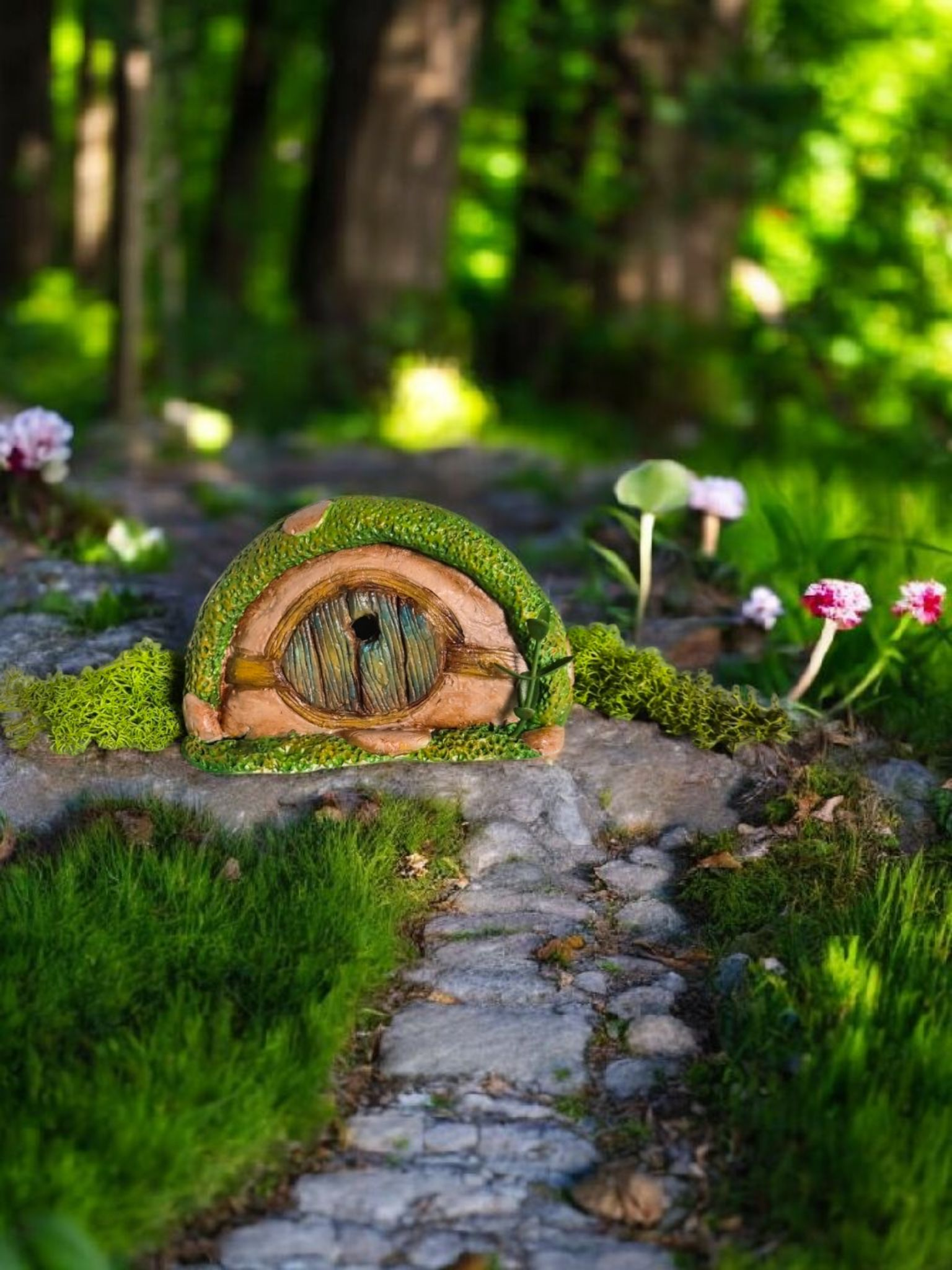 Sculptée à la main avec des détails minutieux  porte ronde, pierres naturelles, feuillage délicat  elle diffuse une lumière tamisée et chaleureuse, parfaite pour créer une ambiance magique dans une chambre d'enfant ou un coin lecture féerique.