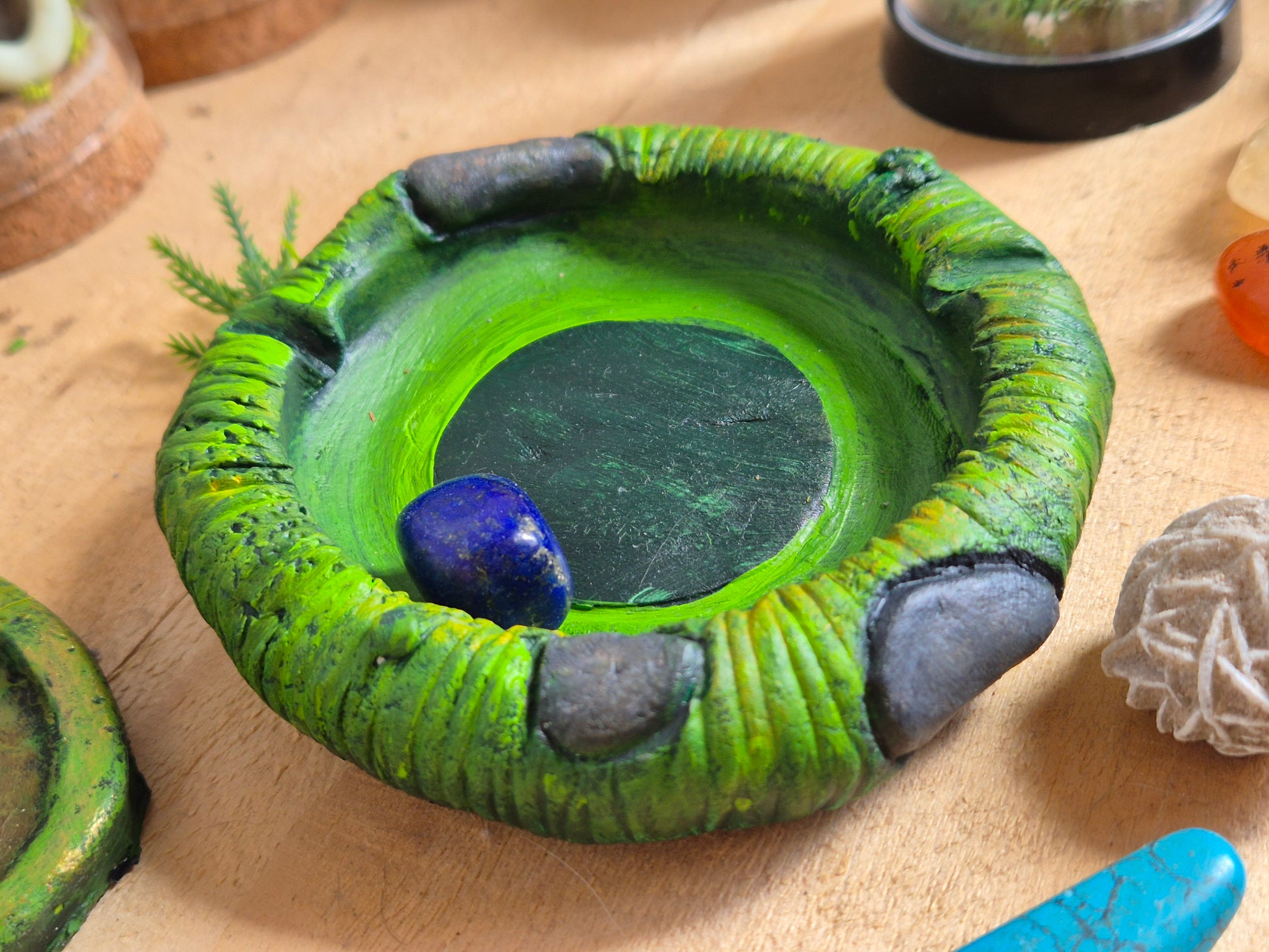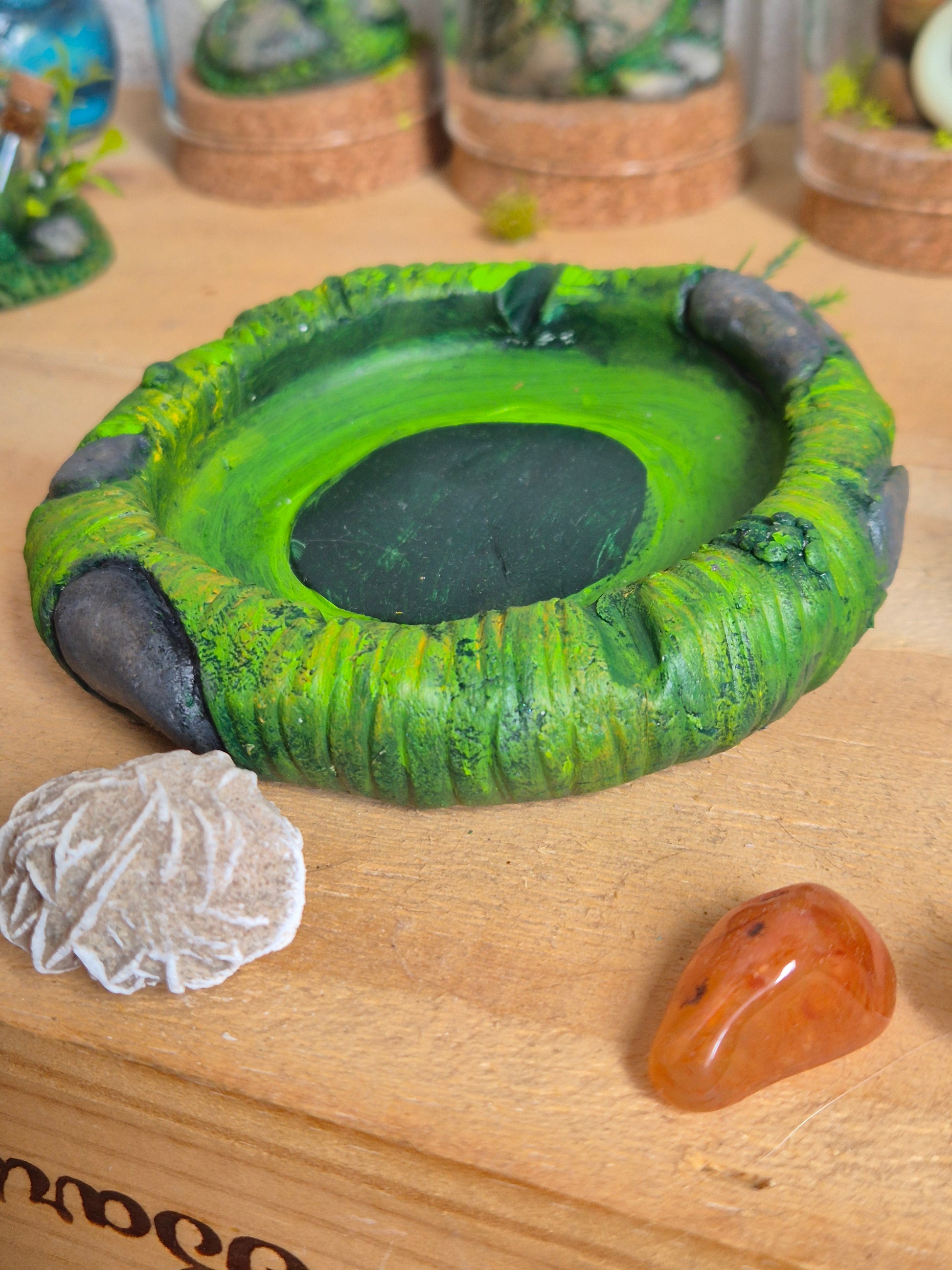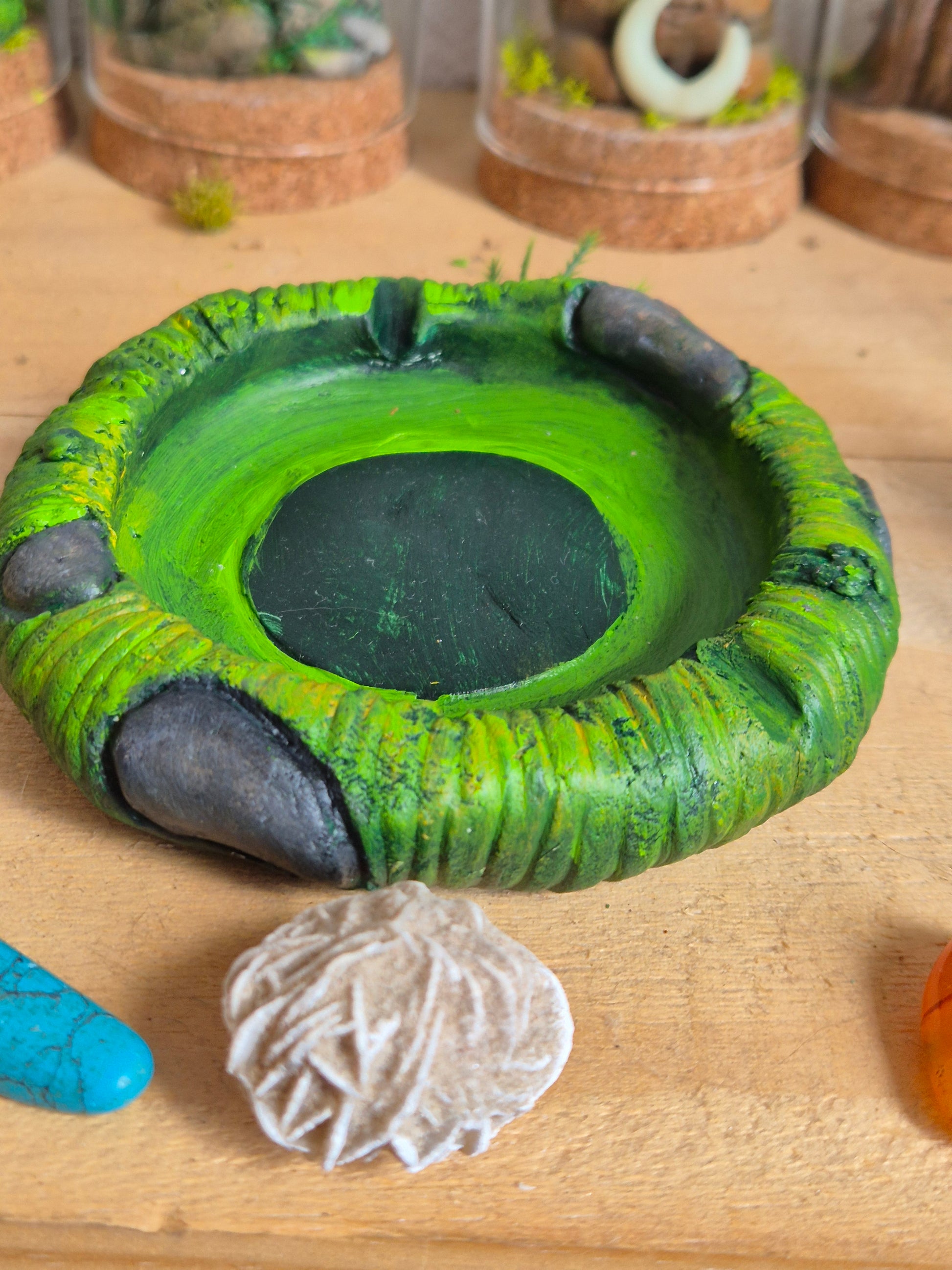 Ce cendrier hors du commun prend la forme d'une motte de terre enchantée, comme sortie d’un conte. Sculpté en relief avec des textures d’écorce, de mousse ou de racines, il s’intègre parfaitement dans une déco végétale ou féerique.