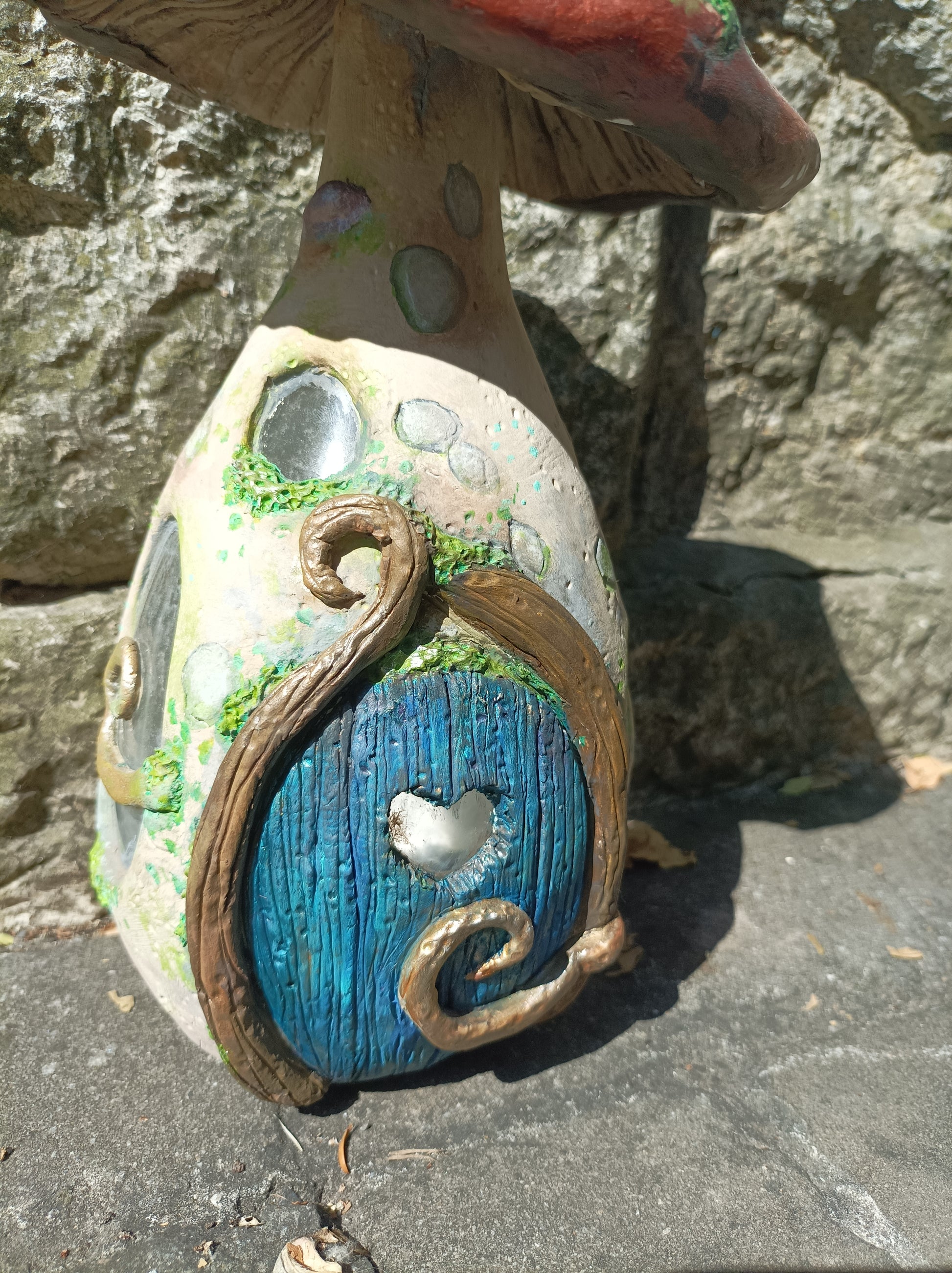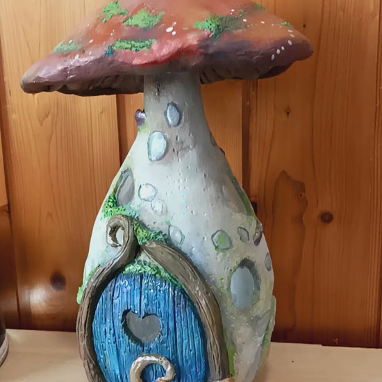 Entrez dans le monde des fées avec cette adorable lampe maison champignon, entièrement sculptée à la main enCréez une ambiance féérique avec la lampe "la féerie du champignon". Cette veilleuse artisanale rappelle une maison de fée dans une chambre enchantée. La lumière douce offre une déco magique pour les amoureux de fairycore et cottagecore. Offrez un cadeau féerique avec cette lampe champignon en grand format. pâte