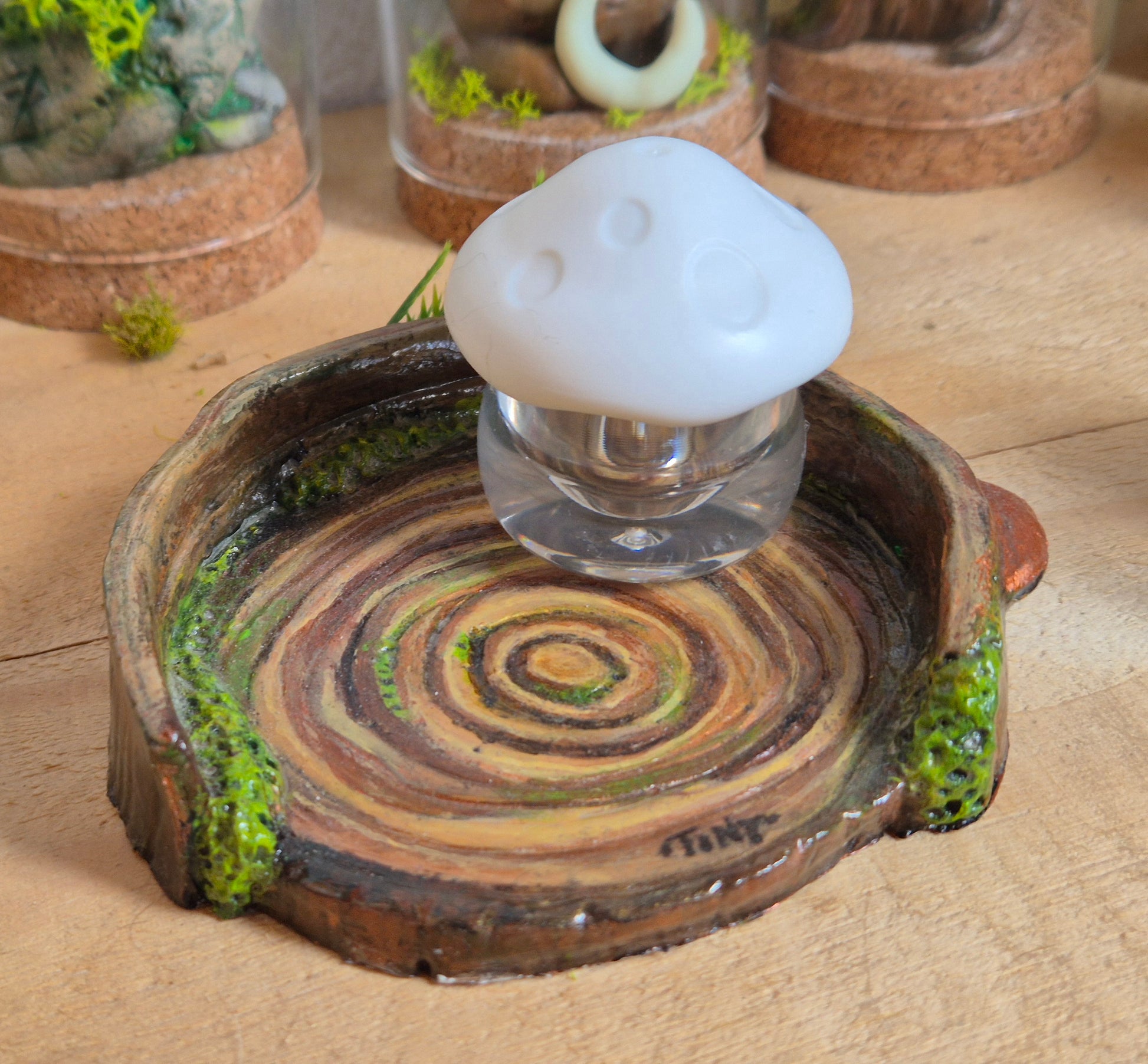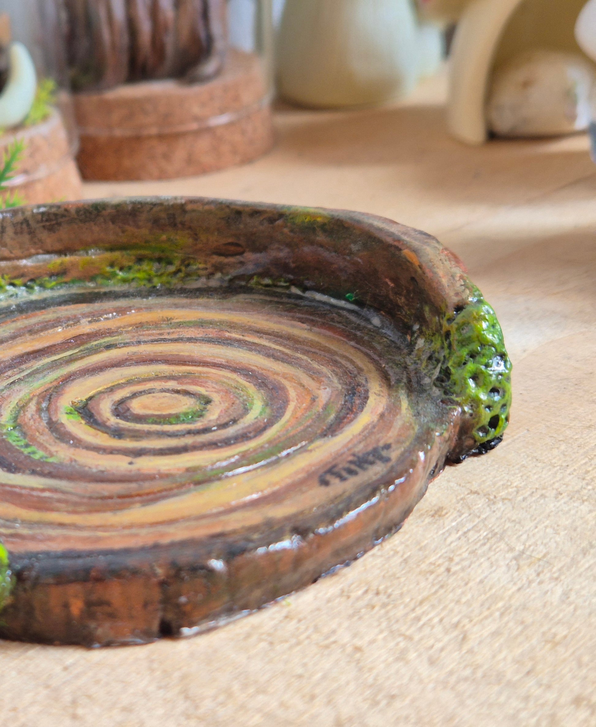 Ce plateau peut servir de vide-poche, de support pour vos bijoux, pierres ou bougies, ou tout simplement d'objet décoratif pour créer un petit autel féerique. Inspiré des contes et de l’univers forestier, il apporte une touche chaleureuse, naturelle et un brin mystérieuse à votre décoration.